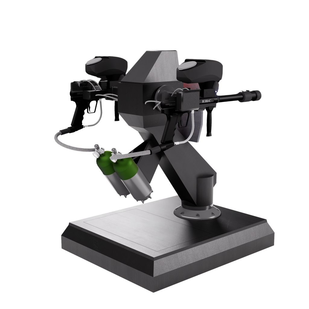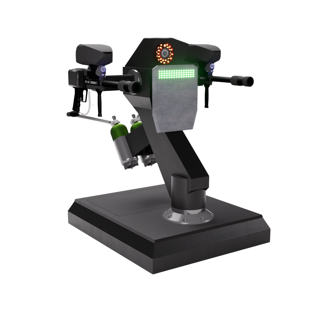 Son châssis robuste, fabriqué via une impression 3D de haute qualité, offre à la fois légèreté et durabilité, tout en permettant une personnalisation facile des composants. Le système modulaire permet de changer rapidement la tête du robot pour passer d’un mode de jeu à un autre, chaque module étant équipé de mécanismes spécifiques (lanceur de billes, émetteur laser, etc.) et de capteurs adaptés. Des caméras haute résolution, combinées à des algorithmes de vision par ordinateur, permettent au robot de reconnaître les cibles dans des environnements variés, même en faible luminosité.