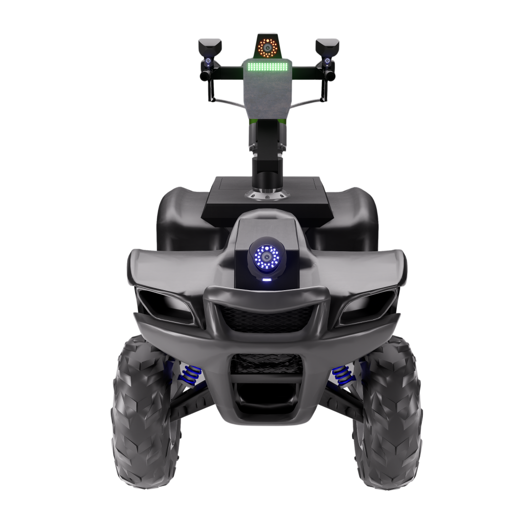 Mais il y ajoute un système de déplacement autonome, motorisé et silencieux, qui offre au robot une mobilité stratégique sur tout type de terrain.